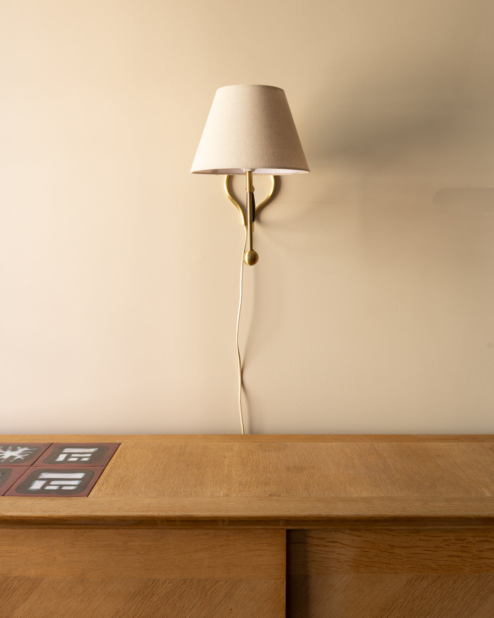 Executed in lacquered brass with bakelite fittings, the lamps embody the material warmth and functional clarity characteristic of postwar Danish design. The brass surfaces show gentle age and tonal variation, developing the soft patina that defines authentic mid-century originals.